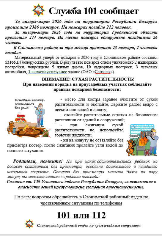 Слонимский районный отдел по чрезвычайным ситуациям сообщает